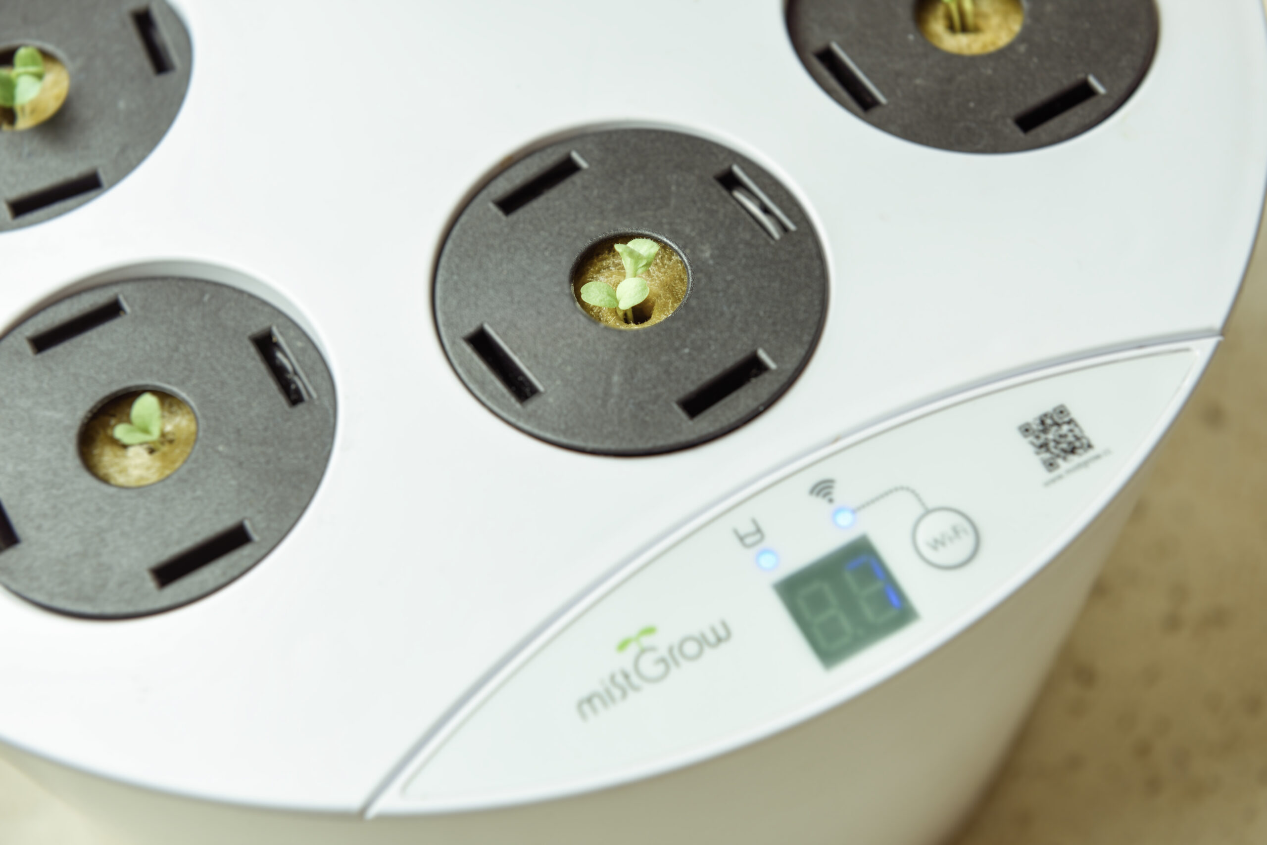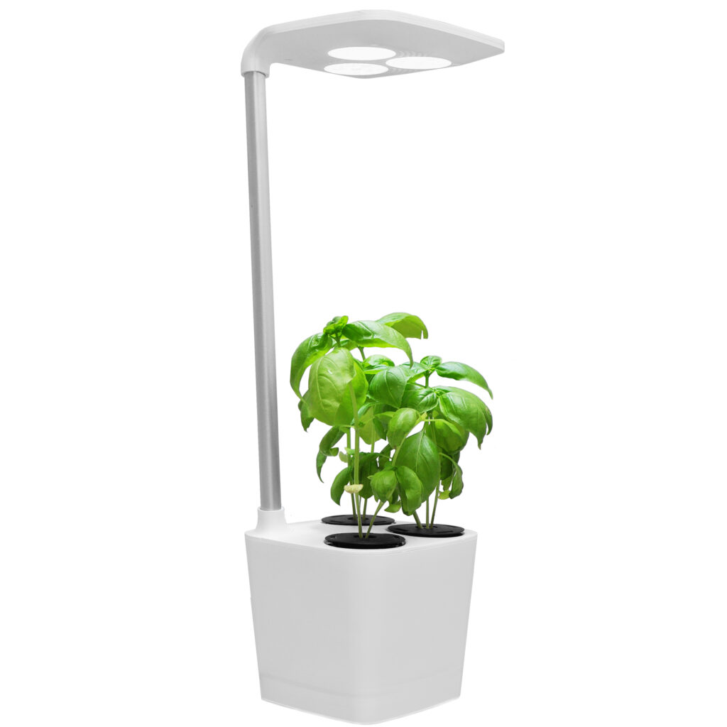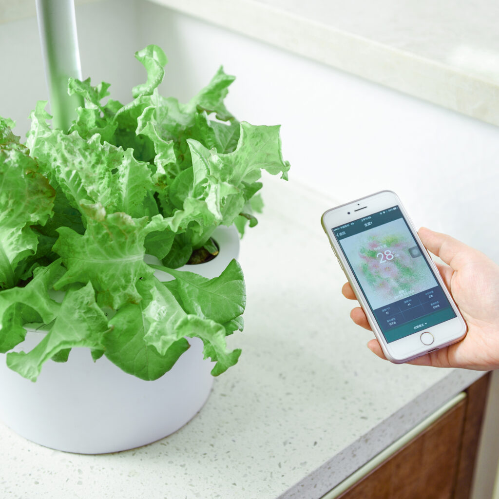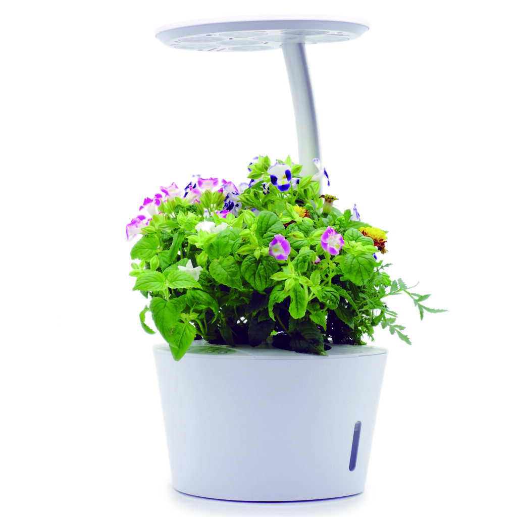 LEDの照明と霧を発生させて根に水分を与える機構で、土を使わずに室内で花やなさいなど植物を栽培することができる機器。